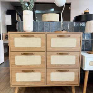 Cómoda Madera de Pino y Rattán Natural – Linea Yakarta