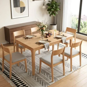Juegos de ComedorJuego de Comedor Ivy Mesa Rectangular Extensible 160cm con Seis Sillas Madera Natural de Gomero