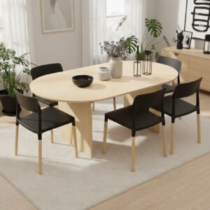 Juego de Comedor Mesa arco crudo 180cm + 6 silla Belloch negra