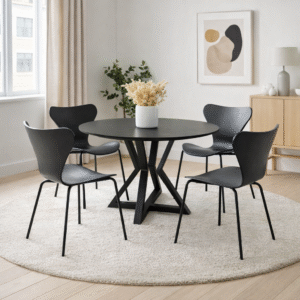 Juego de Comedor Mesa Louvre Redonda 90cm + 4 Sillas Jacobsen – Negro