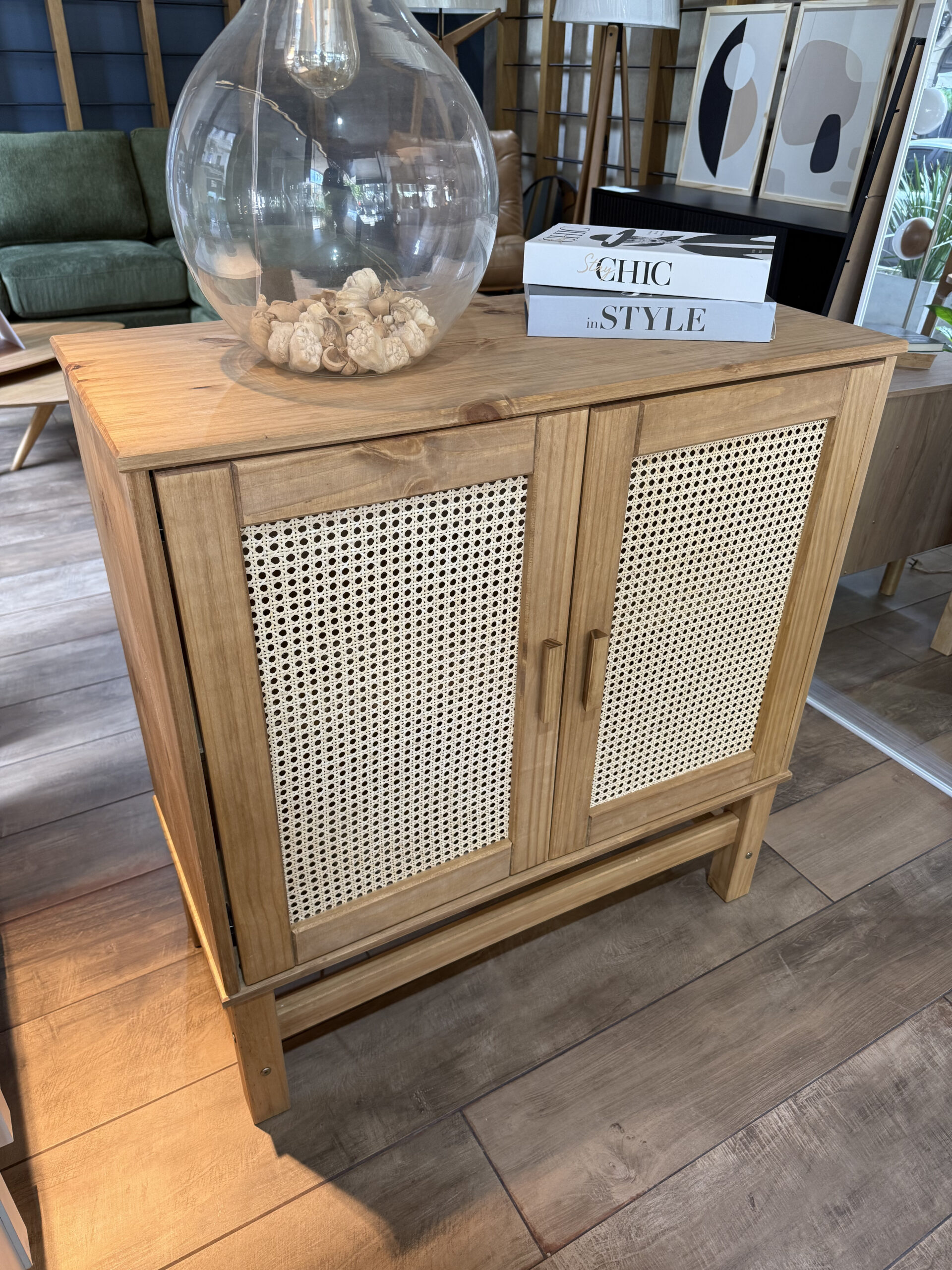 – Material: Ratan Natural / Madera de Pino