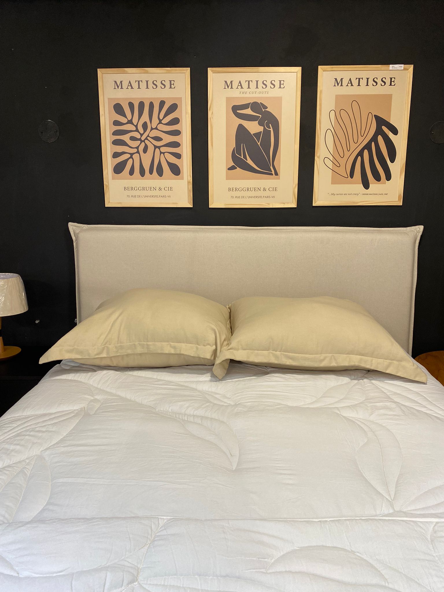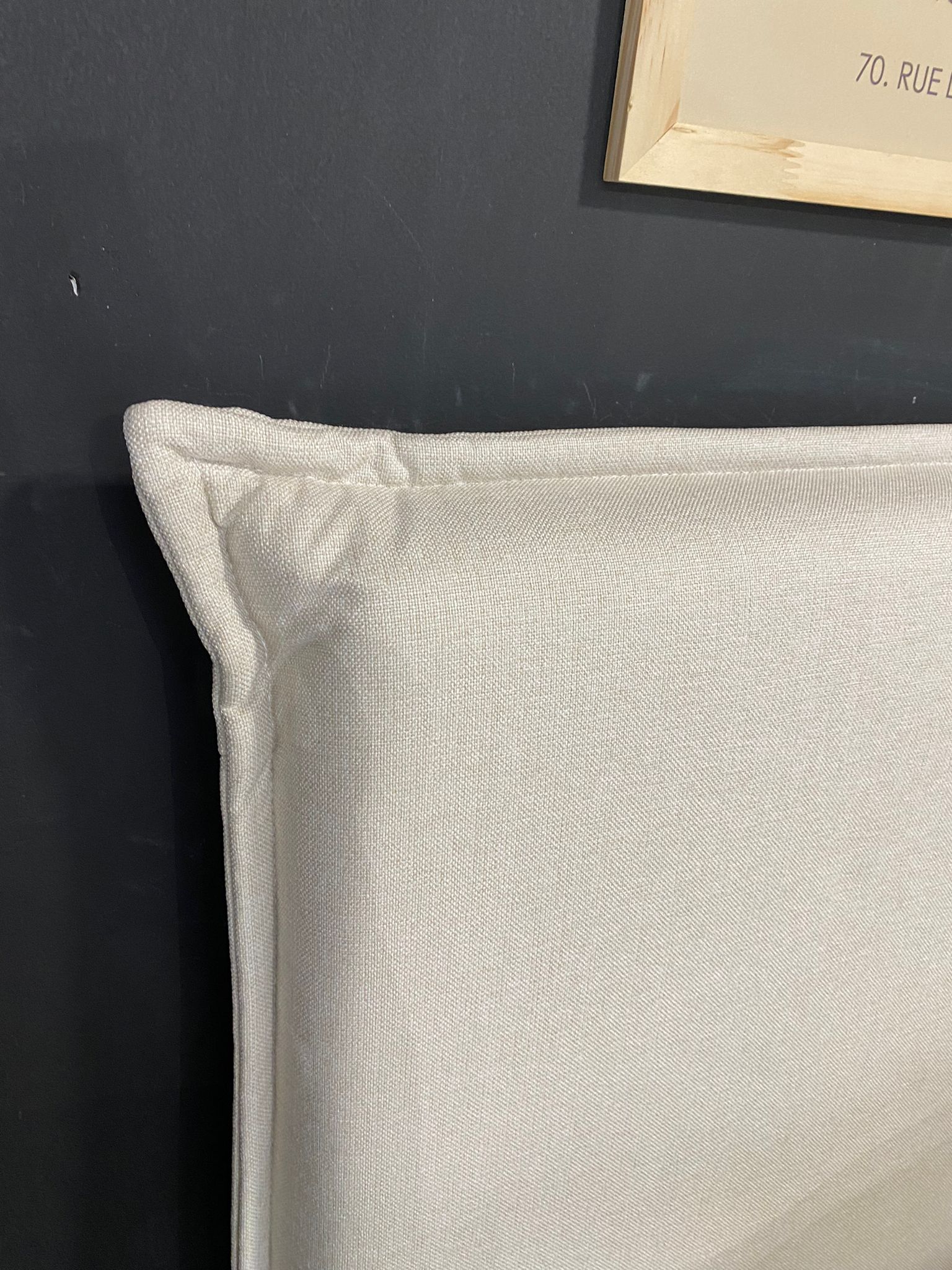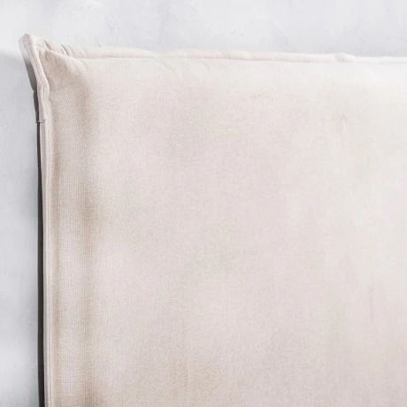 Respaldo para sommier tamaño Queen, estructura en madera maciza, tapizado en tela poliester con trama de algodón, con proceso «Easy-clean»